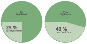 Physical fitness: The proportion of citizens in good physical condition increased from 25% to 40% after 12 weeks of training with DigiRehab. Citizens trained 2 x 20 minutes a week with SOSU staff.